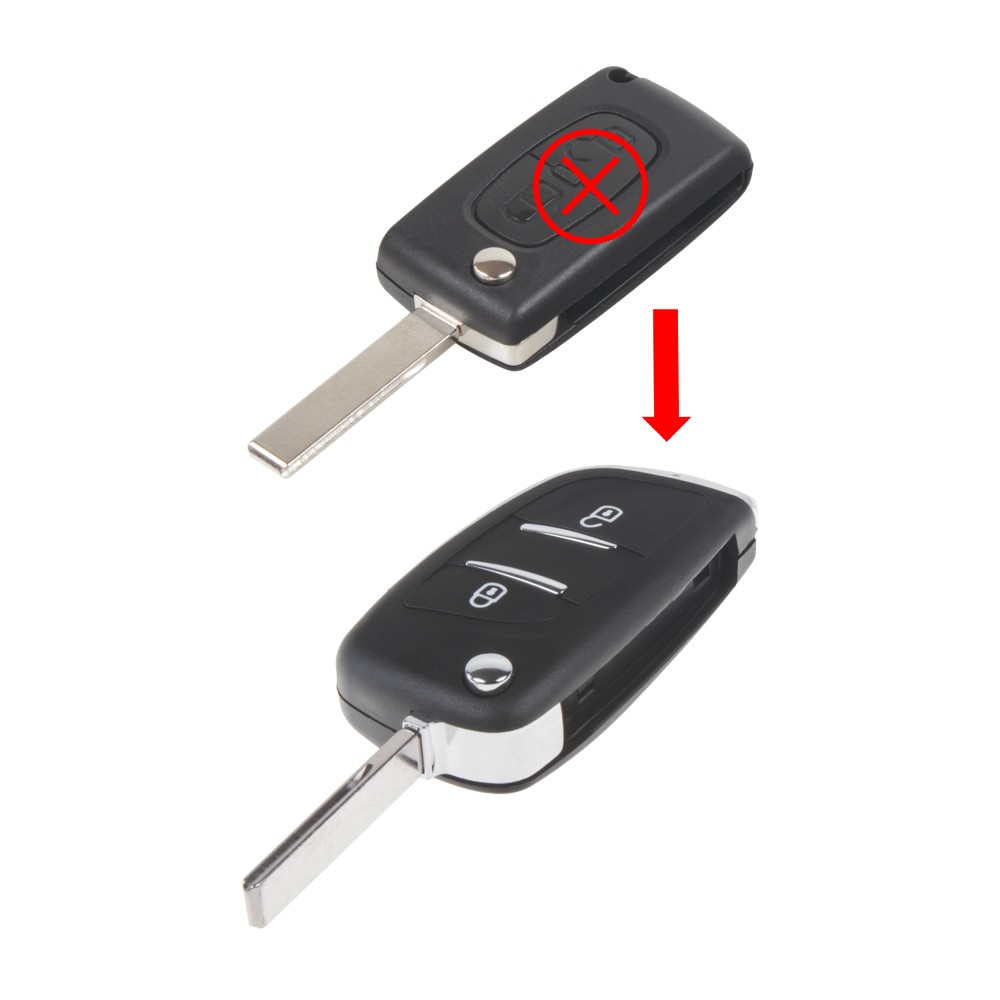 - náhradný obal vystreľovacieho kľúča pre vozidlá koncernu Peugeot s 3-tlačidlovým ovládačom (bez elektroniky a čipu imobilizéra) planžeta kľúča HU83, batéria je umiestnená samostatne v obale kľúča