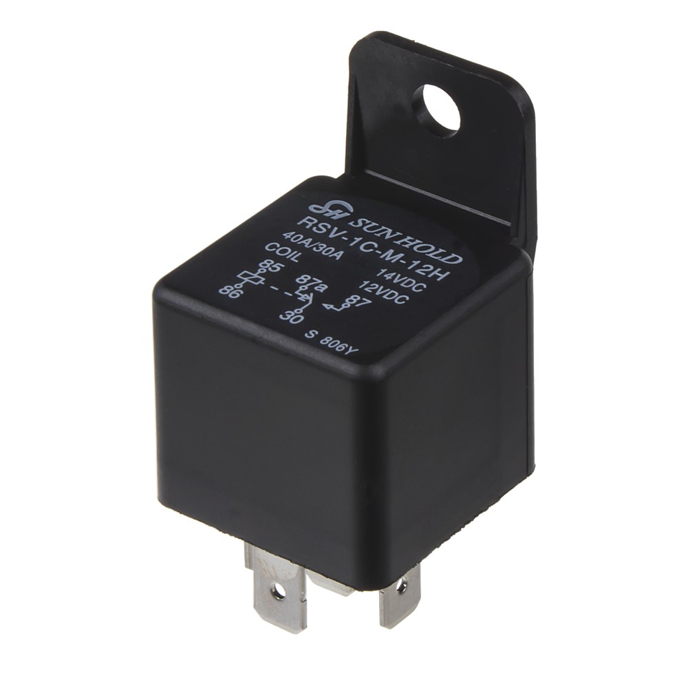 • Spínacie relé s úchytom je navrhnuté pre spoľahlivé a efektívne riadenie elektrických obvodov s napájacím napätím 12 V DC a maximálnym prúdovým zaťažením až 40 A.