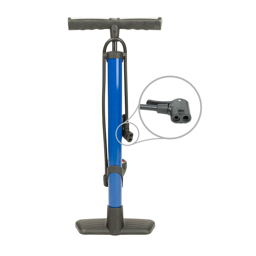 • Ručná pumpa s integrovaným tlakomerom je praktický pomocník na hustenie kolies bicyklov, športových lôpt, nafukovacích člnov aj na príležitostné dohustenie pneumatík automobilov.