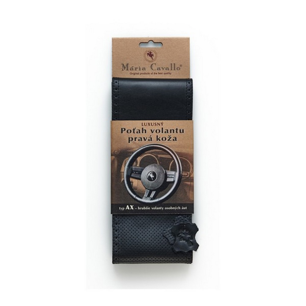 Poťah na volant - kožený čierny perforovaný Mária Cavallo AX 36,5-39cm / 11cm