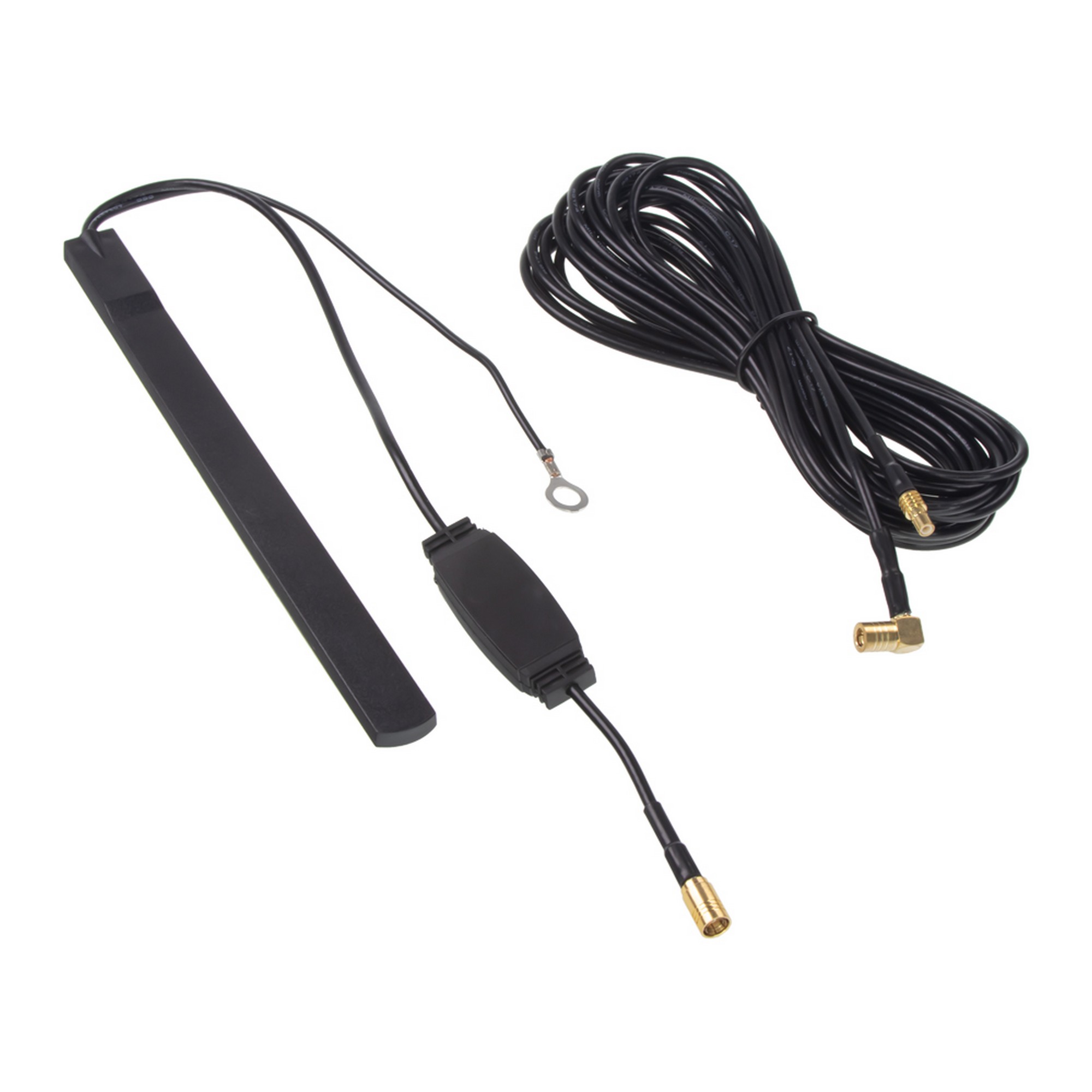 - Univerzálna anténa, dlhá 40 cm, je navrhnutá pre montáž na zadnú časť strechy a je vybavená vstavaným zosilňovačom, ktorý zvyšuje kvalitu prijímaného signálu.