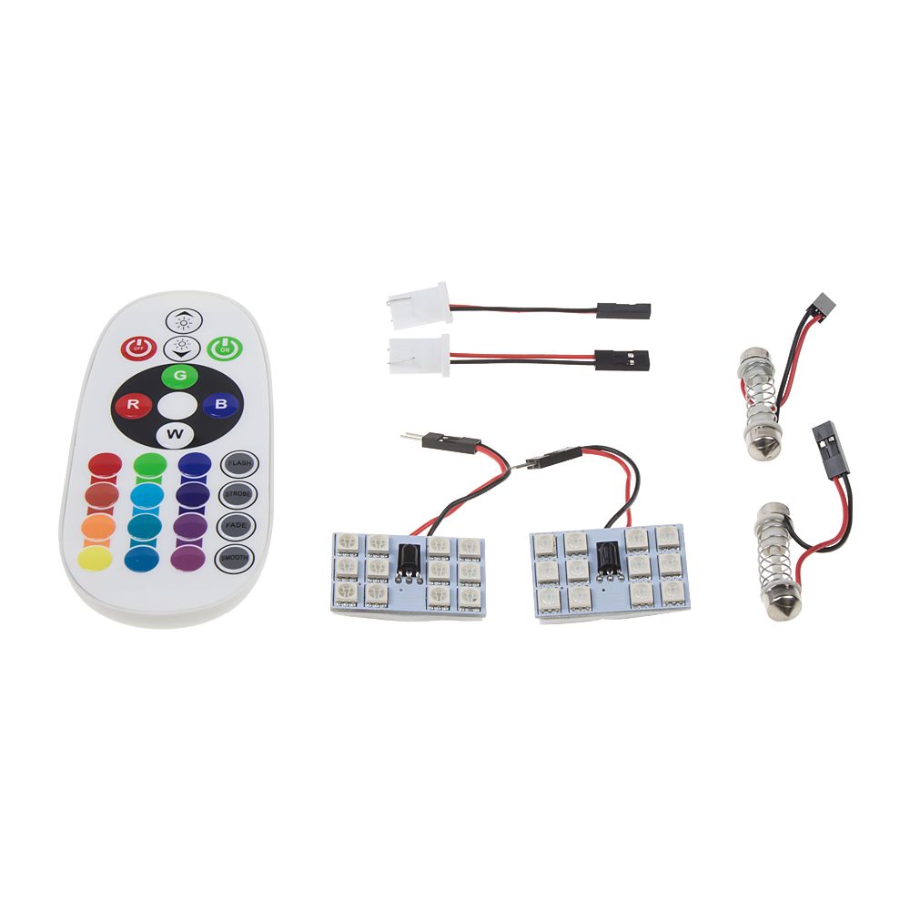 - set výkonných RGB žiaroviek s päticou sufit 31mm, ktoré umožňujú prepínanie farieb svetla pomocou priloženého diaľkového ovládača