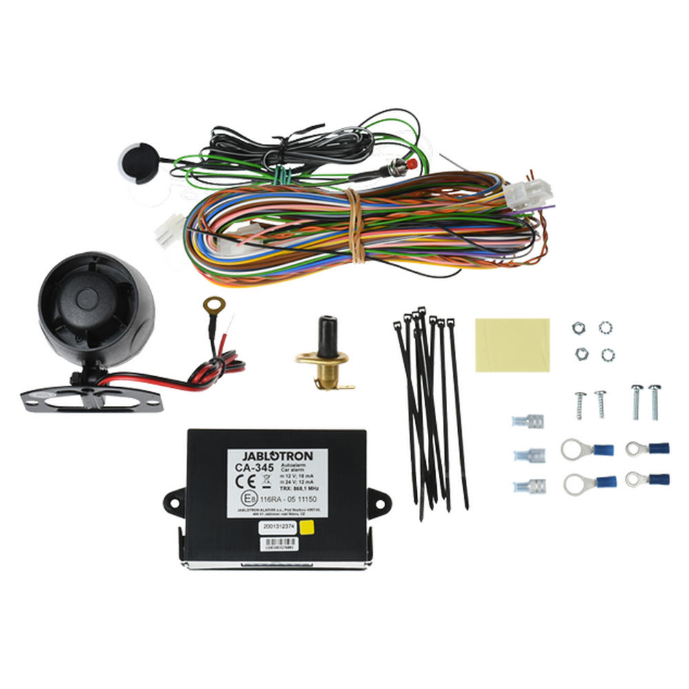 • Autoalarm Jablotron CA-345 je určený na inštaláciu do vnútorného priestoru vozidla s palubným napätím 12 aj 24V a ukostreným záporným pólom.