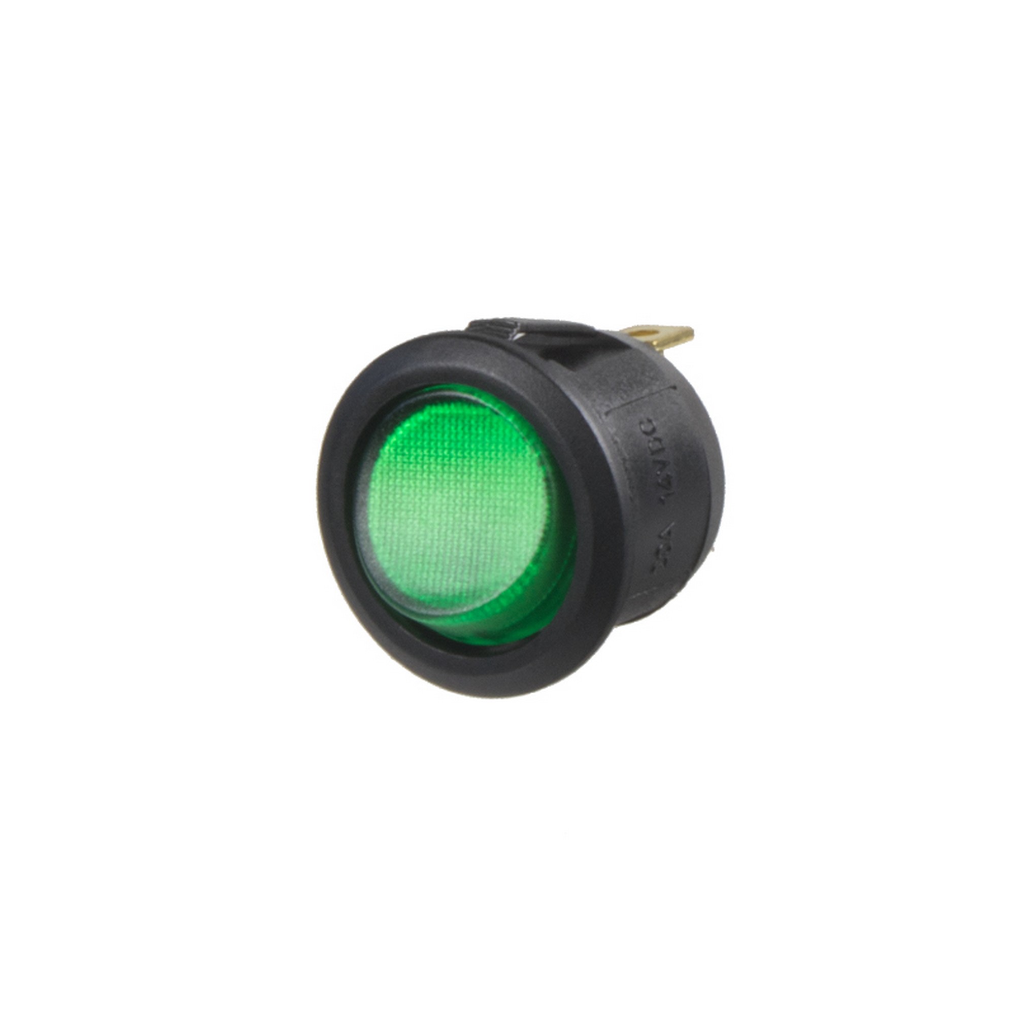 Kolískový spínač 12V / 20A - okrúhly so zeleným podsvietením:
