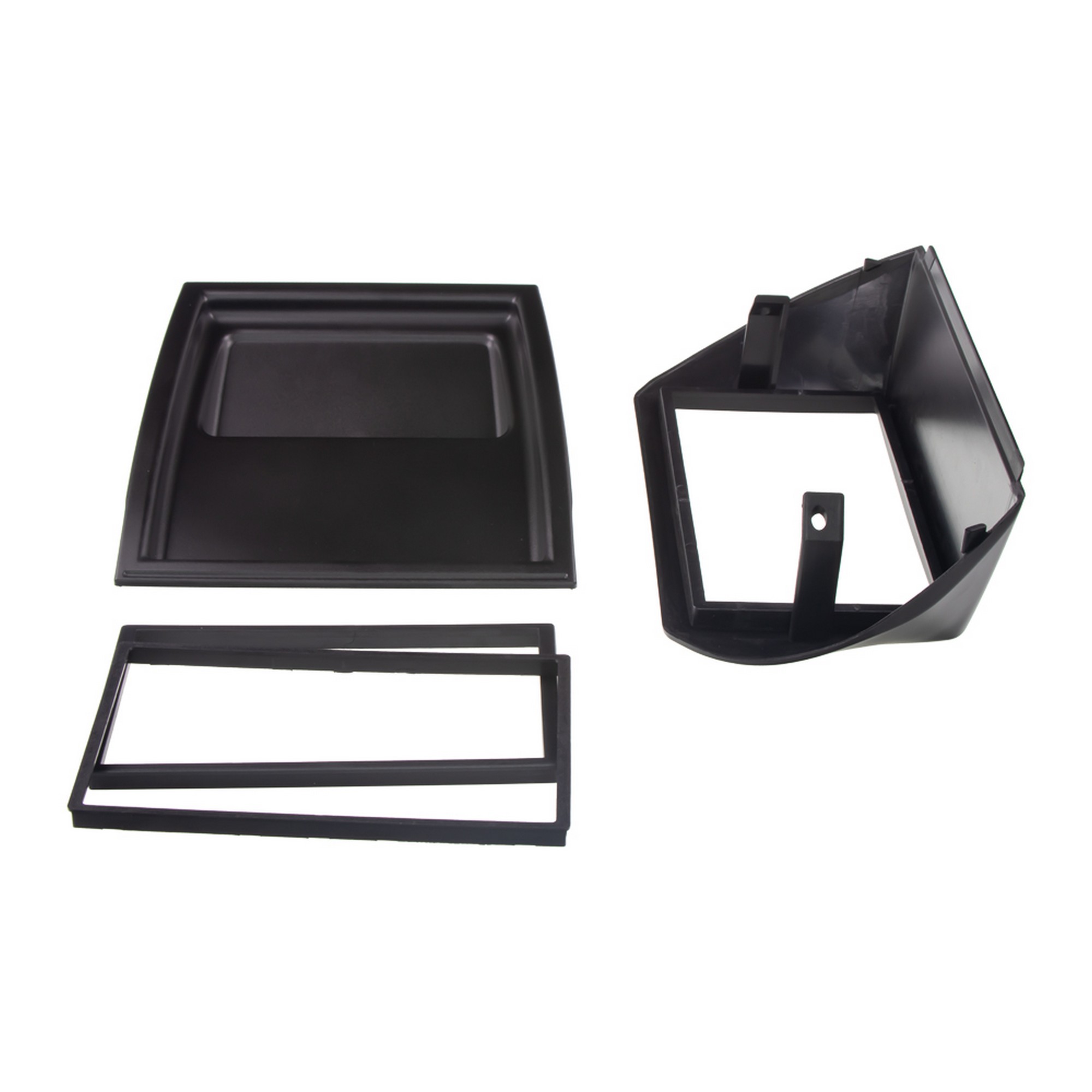 - Sada obsahuje kovový rámik, ktorý slúži na pevné uchytenie 2DIN autorádia do palubnej dosky, a plastový rámik ktorý zabezpečí, že nové rádio bude vyzerať ako originálna súčasť palubnej dosky.