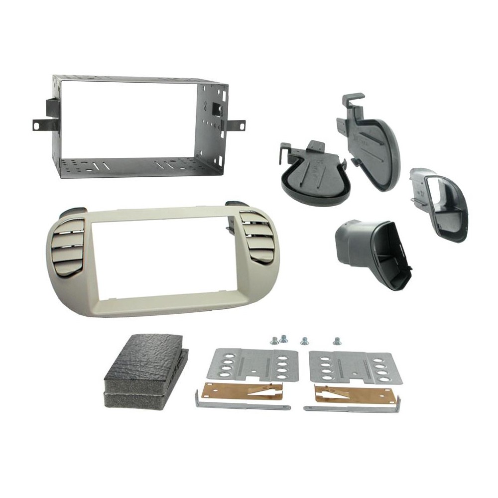 - Táto montážna redukcia umožňuje jednoduchú a presnú inštaláciu 2DIN autorádia do vozidiel Fiat 500, čím zaisťuje profesionálne uchytenie a esteticky dokonalé začlenenie do palubnej dosky.