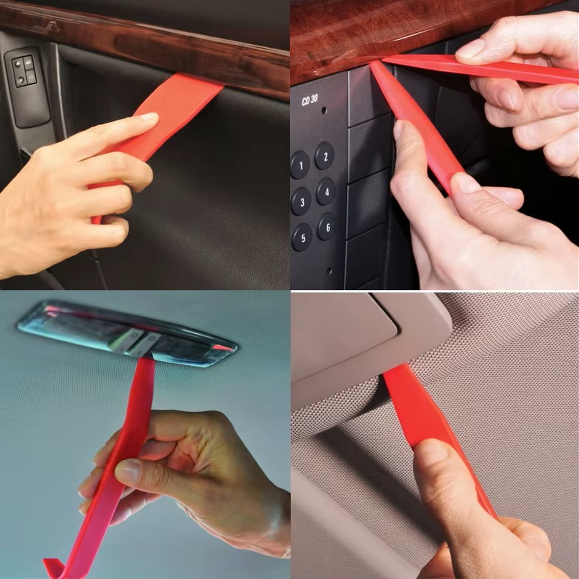 - Ochrana interiéru pred poškriabaním: Špeciálne upravené zaoblené hrany zabezpečia bezpečné a pohodlné odstraňovanie obložení bez rizika poškriabania alebo zlomenia dielov.