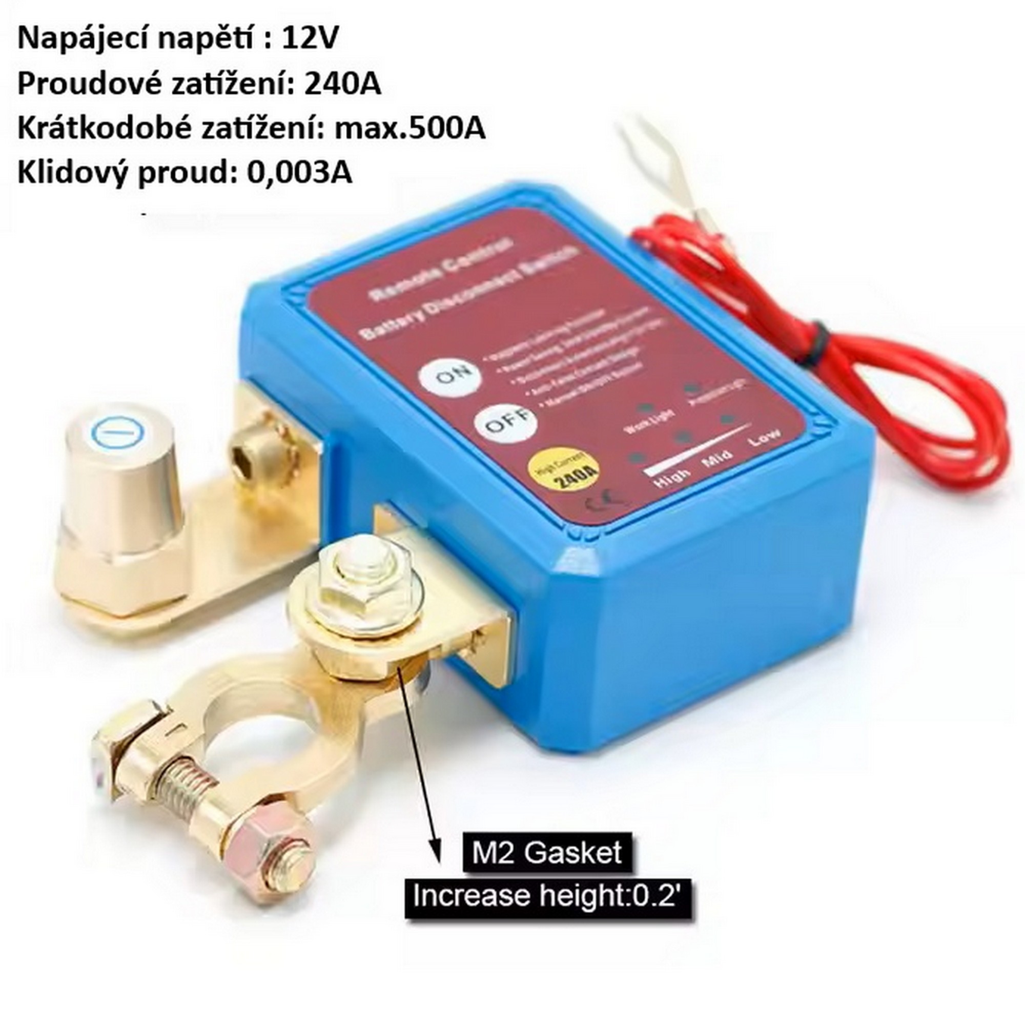 - Špeciálne diaľkovo ovládané relé, navrhnuté na efektívne spínanie a odpojenie batérie vo vašom vozidle.