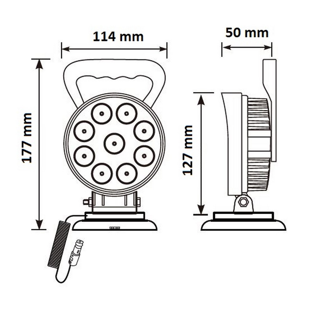 Biele LED svetlo s magnetom - 9x3W LED / 10-30V / CL napájanie / ECE R10 (ø114mm):