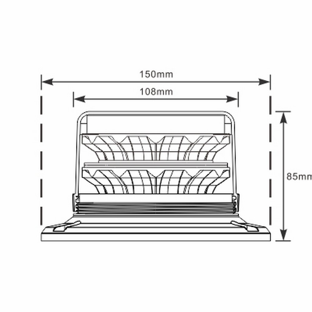 - rozmery: priemer základne 150 mm, priemer krytu 108 mm, výška 85 mm