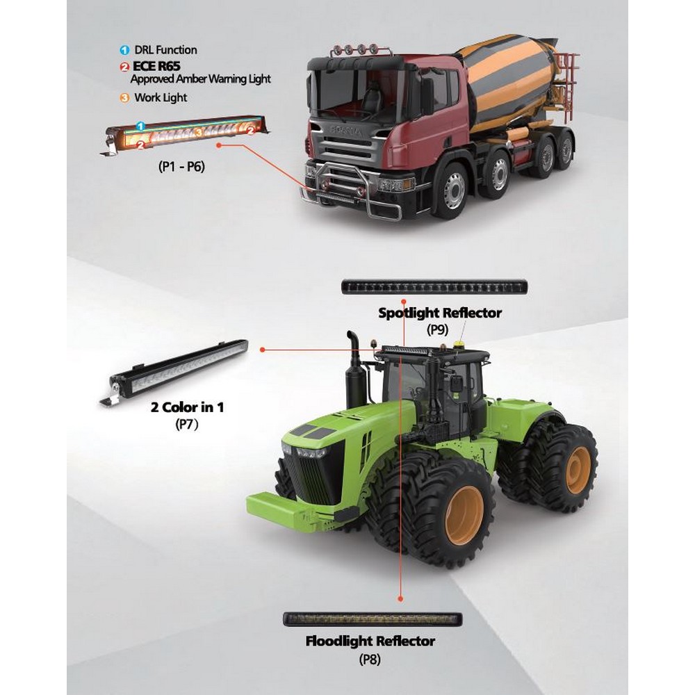 - Všestranná LED svetelná rampa, ktorá je ideálna pre široký spektrum vozidiel vrátane nákladných automobilov, bagrov, nakladačov, offroad vozidiel a inej pracovnej techniky.