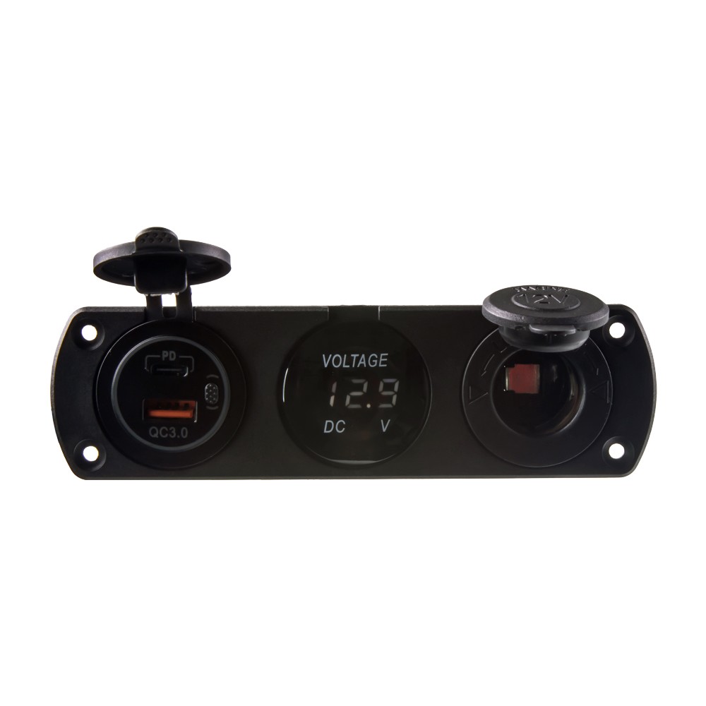 Nabíjačka 12V / 24V - USB-QC3.0 + USB-C PD / CL zásuvka / voltmeter
