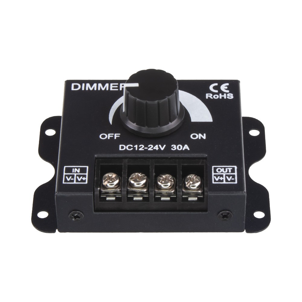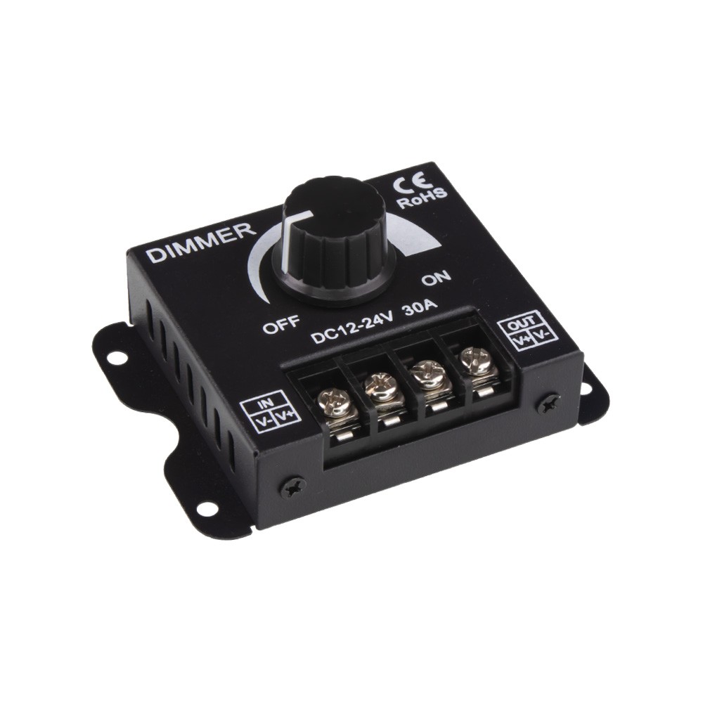 - LED Stmievač 12 V - 24 V, 30 A - otočný regulátor jasu pre LED pásky.