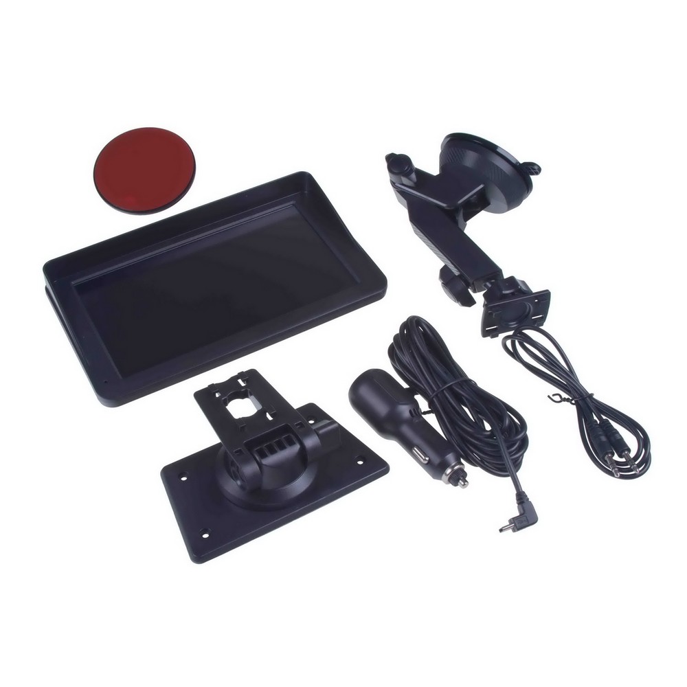 - Monitor s dotykovou 7" obrazovkou (Plug and Play, vhodné pre všetky autá) je dodávaná so silným stojanom s prísavkou, so stojanom pre pevnú montáž na palubnú dosku a podobne.