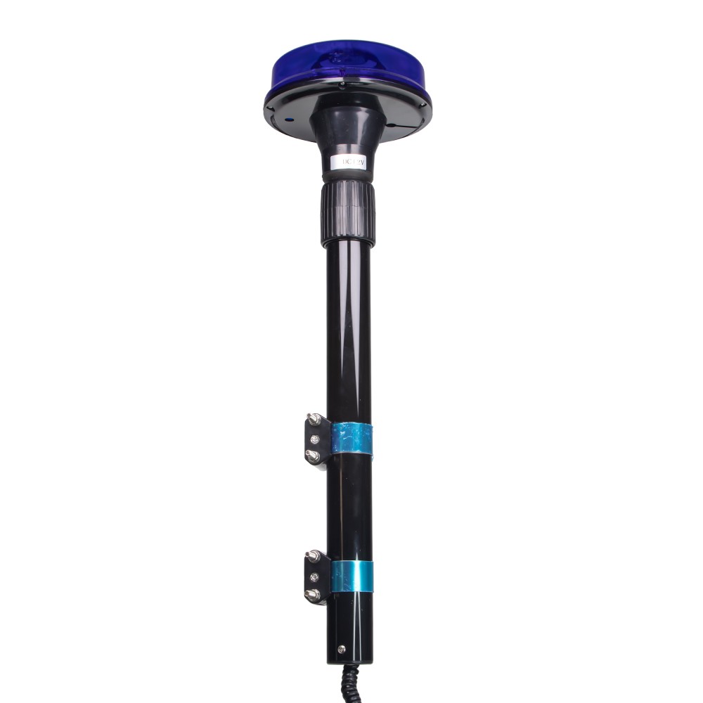 Modrý LED maják 12V - 6x 1W LED s teleskopickou tyčou na motocykel 61-100 cm: