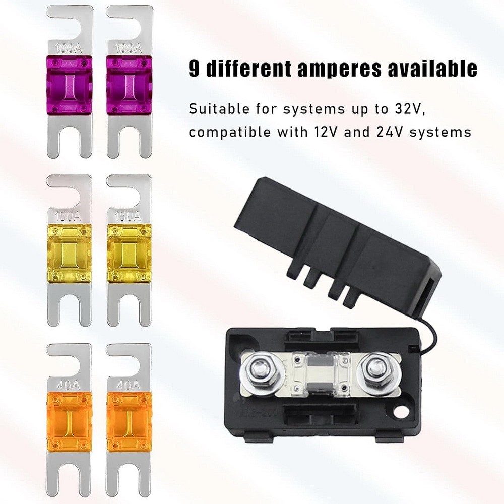 - Kompatibilný s AFS poistkami (Mini ANL) – menšie skrutkovacie poistky až 150 A (poistka nie je súčasťou balenia)