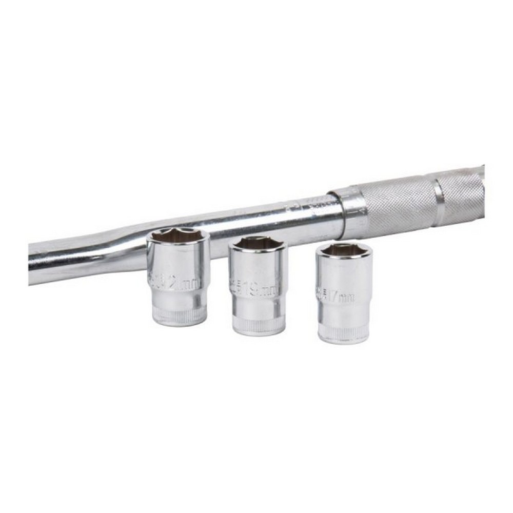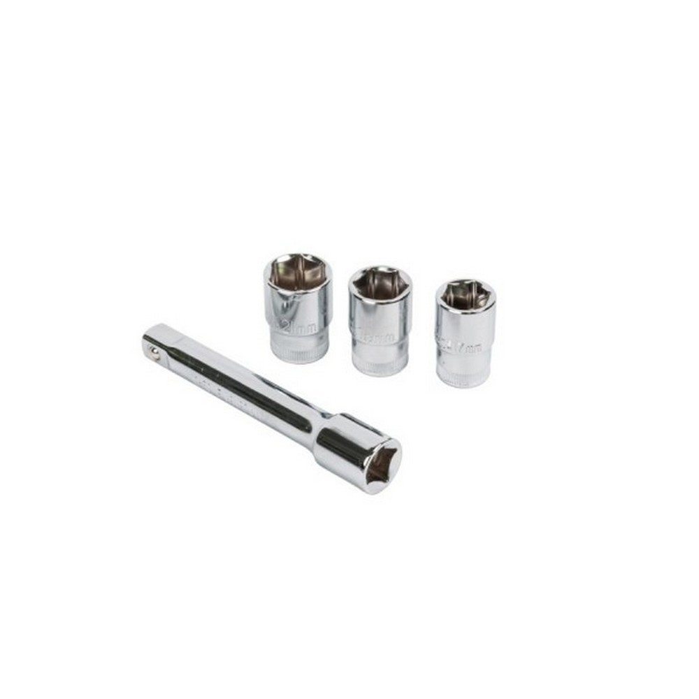 • Celý set je uložený v praktickom plastovom kufríku, ktorý obsahuje aj tri nástrčkové orechy (17, 19, 21 mm) a 12 cm predĺženie, aby ste mali všetko potrebné vždy poruke – doma, v garáži alebo na cestách.