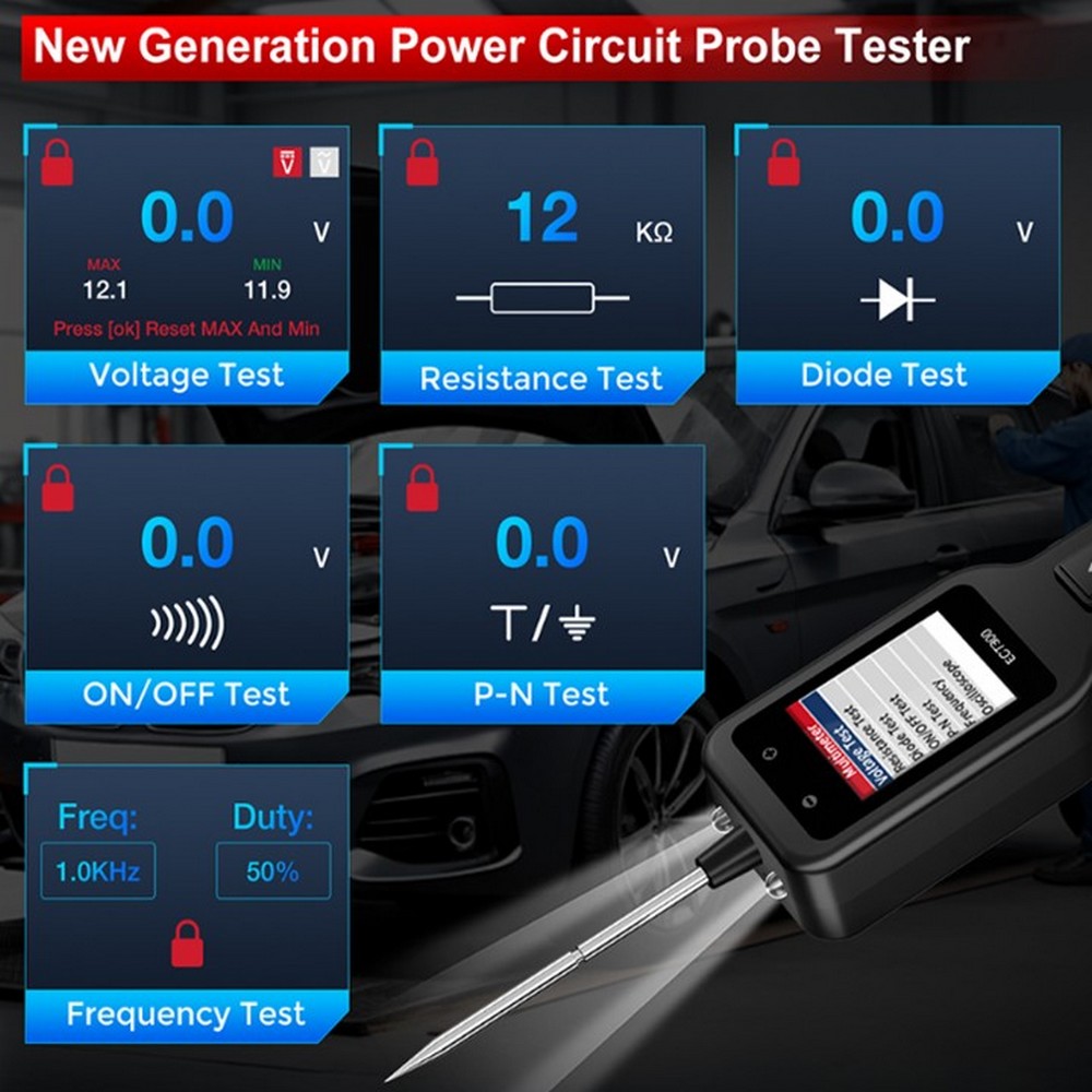 • Viacúčelový tester a merací prístroj automobilových elektrických obvodov je určený na komplexnú diagnostiku a meranie v oblasti autoelektriky.
