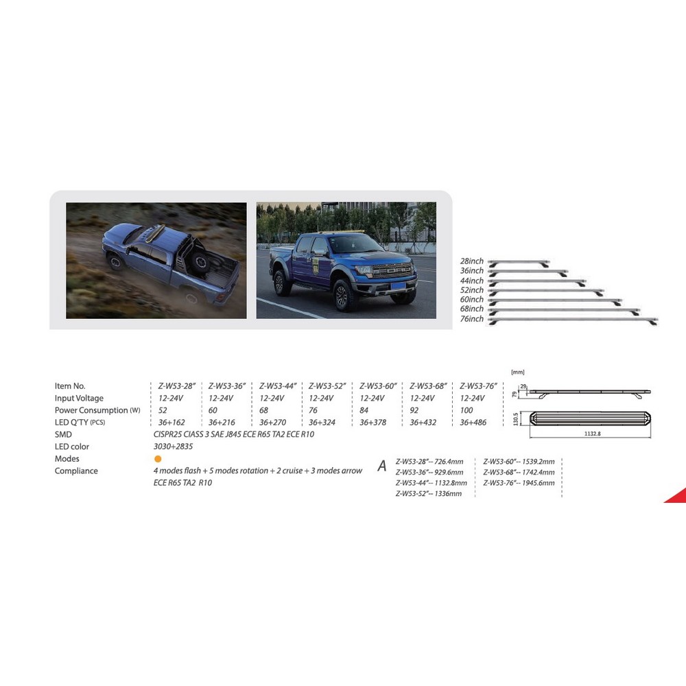 • Parametre 12/24V oranžovej 93cm LED rampy ECER65
