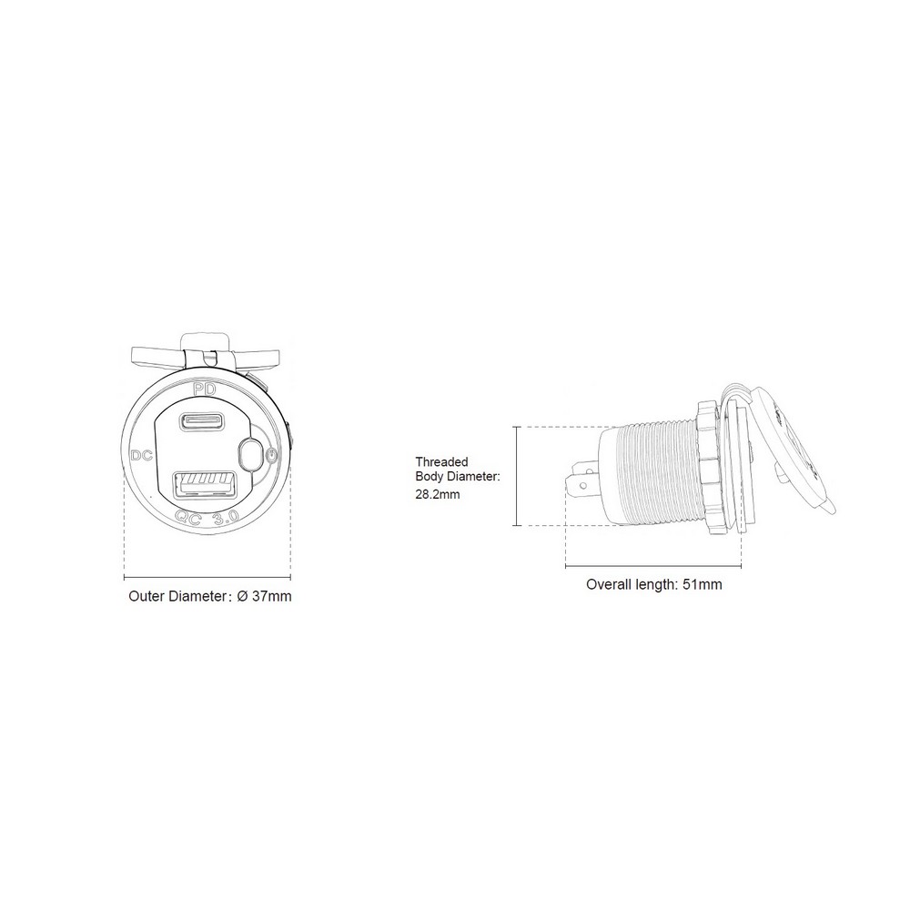 • USB nabíjačka QC3.0 + USB-C, digitálny voltmeter, hliníková do panelu, 12/24V