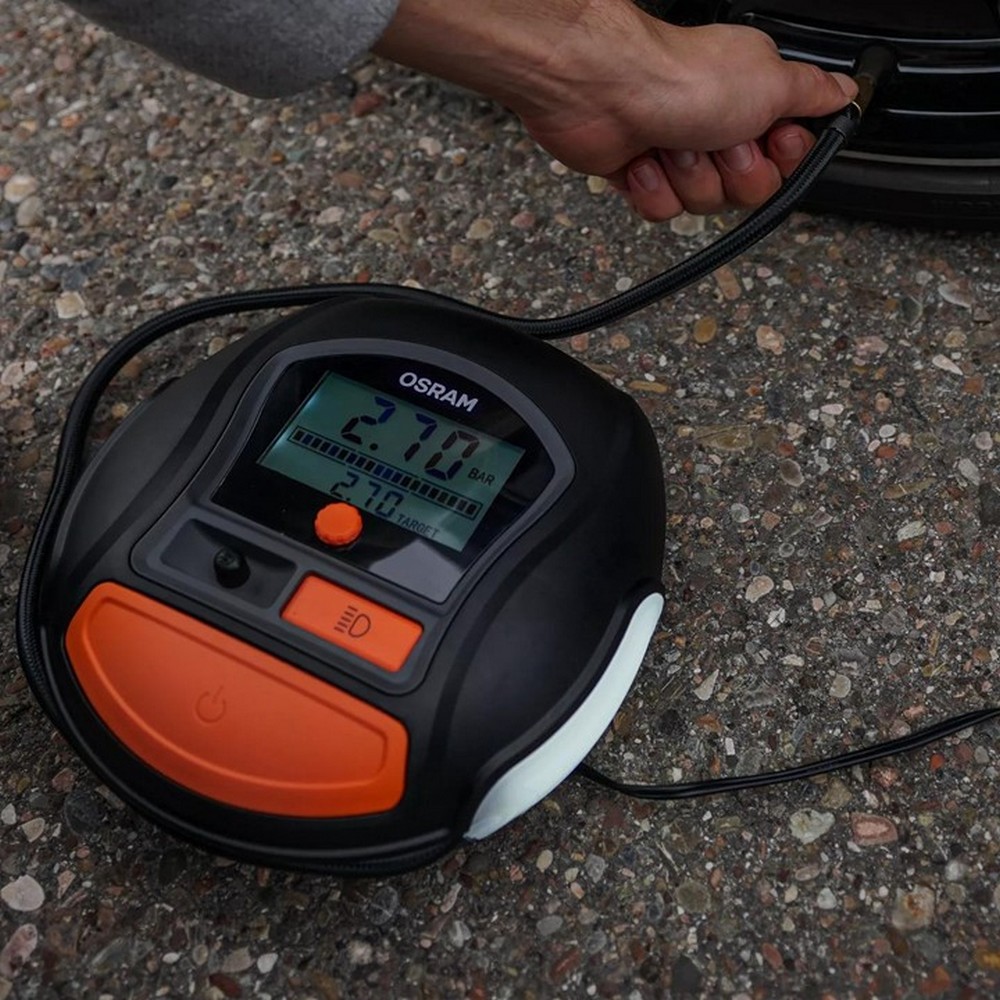 - OSRAM TyreInflate 1000 je výkonný digitálny kompresor 12V, s ktorým nahustíte pneumatiky rýchlo, presne a bez zbytočného zdržania. Oceníte ho pri bežnej kontrole tlaku aj v situácii, keď potrebujete mať vozidlo čo najskôr opäť pripravené na jazdu.