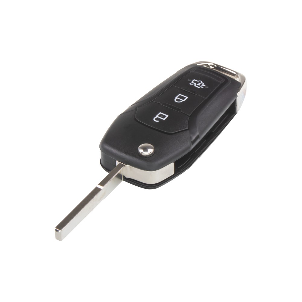 - Náhradný obal kľúča pre vozidlá Ford s 3-tlačidlovým ovládačom. Obal neobsahuje elektroniku ani čip imobilizéra – do nového obalu je potrebné preniesť elektroniku diaľkového ovládania a transpondér z pôvodného kľúča. Planžetu kľúča je nutné nechať vyfrézovať podľa tvaru originálneho kľúča.