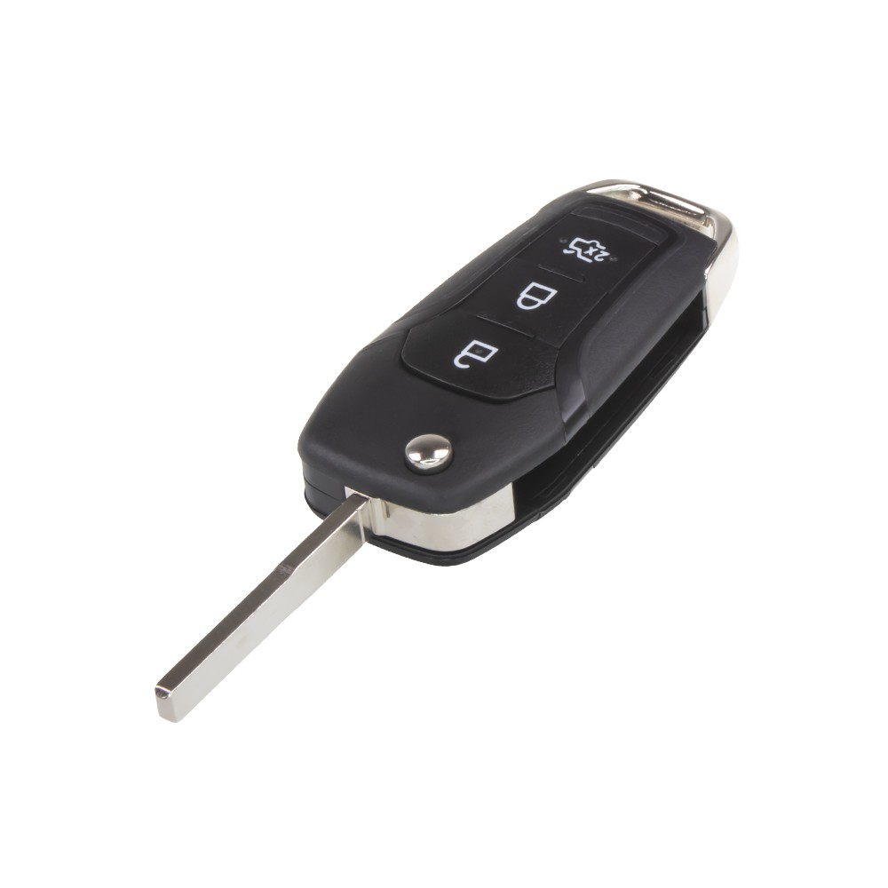 - Náhradný obal kľúča pre vozidlá Ford s 3-tlačidlovým ovládačom. Obal neobsahuje elektroniku ani čip imobilizéra – do nového obalu je potrebné preniesť elektroniku diaľkového ovládania a transpondér z pôvodného kľúča. Planžetu kľúča je nutné nechať vyfrézovať podľa tvaru originálneho kľúča.