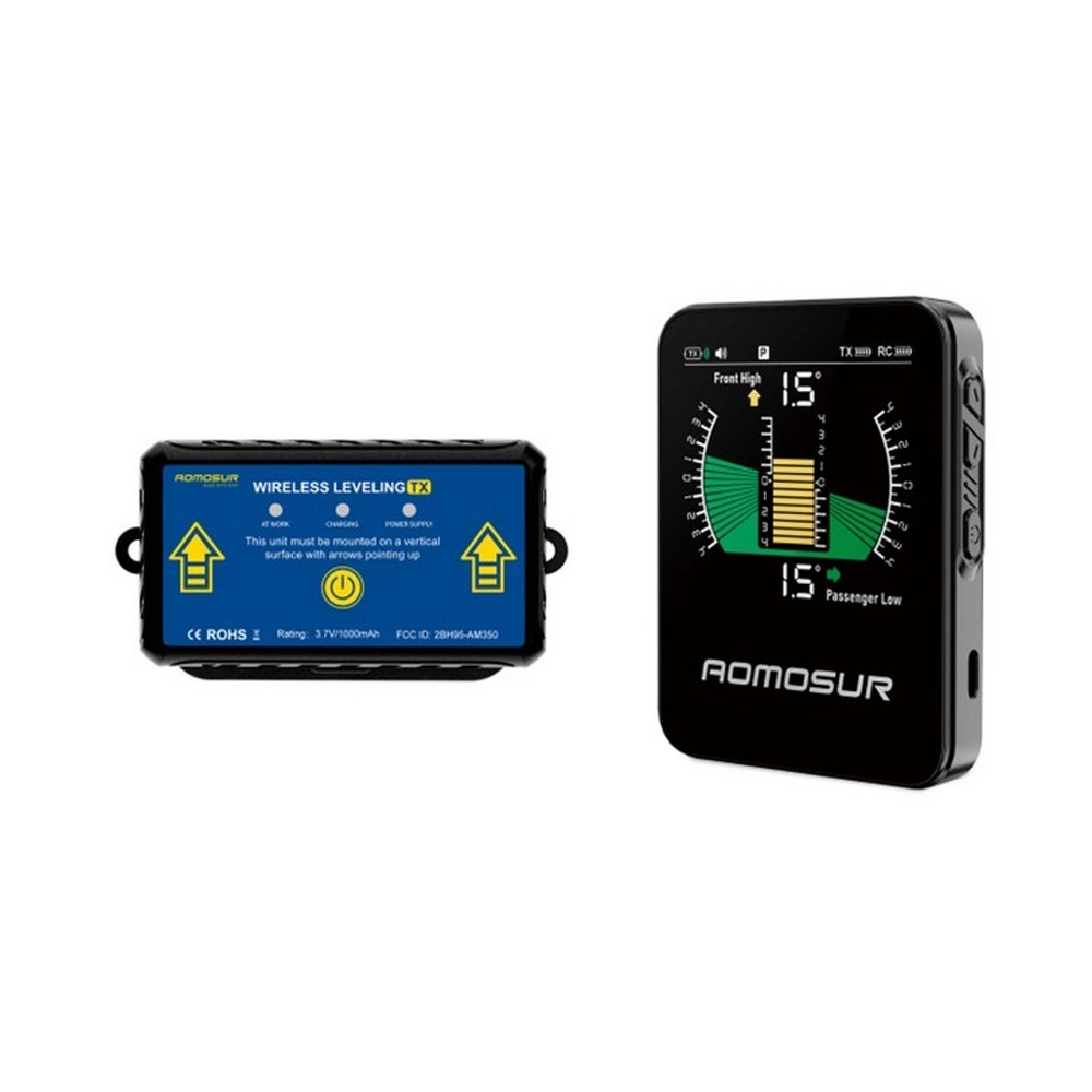 • bezdrôtový náklonomer pre karavany – snímač a displej s grafickým zobrazením náklonu