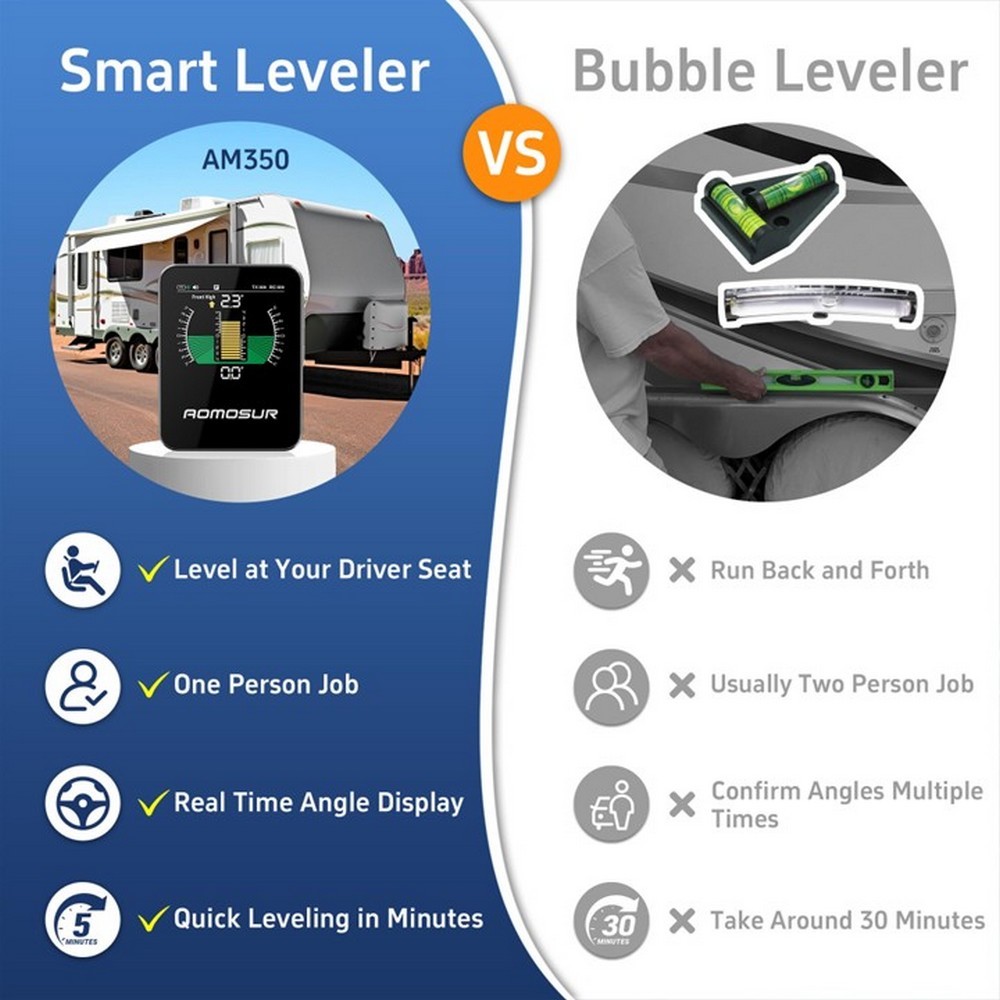 • porovnanie digitálneho náklanomera a klasickej vodováhy pre karavan – výhody bezdrôtového riešenia